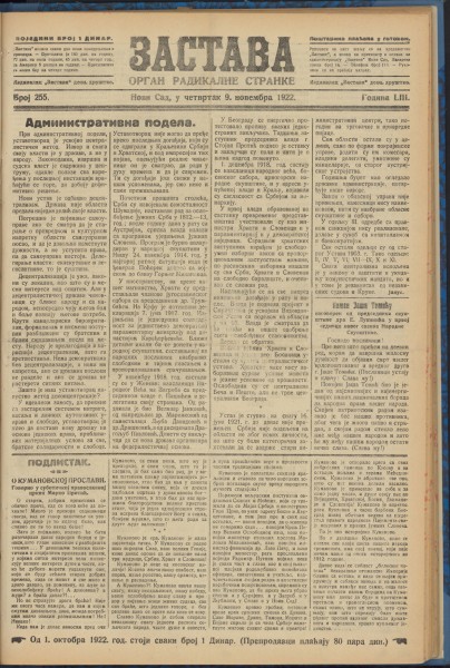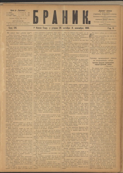 - Број: Год. 14, бр. 124 (9. нов. 1865)