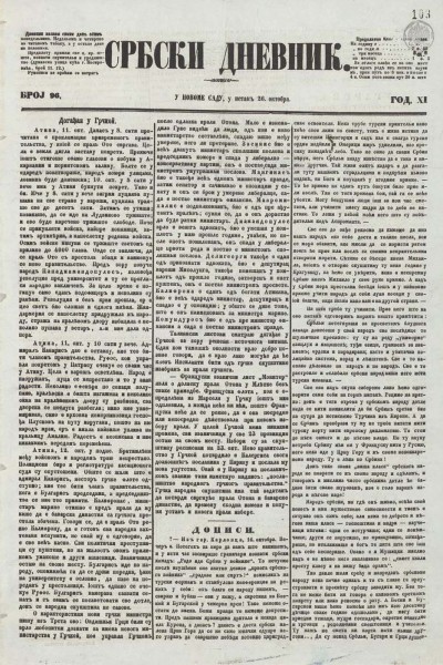 - Број: Год. 21, бр. 106 (8. нов. 1868)