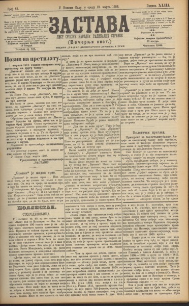 - Број: Год. 20, бр.17 (26.феб. 1867)
