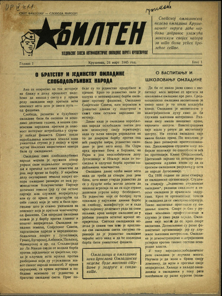 БИЛТЕН Уједињеног савеза Антифашистичке омладине Округа крушевачког