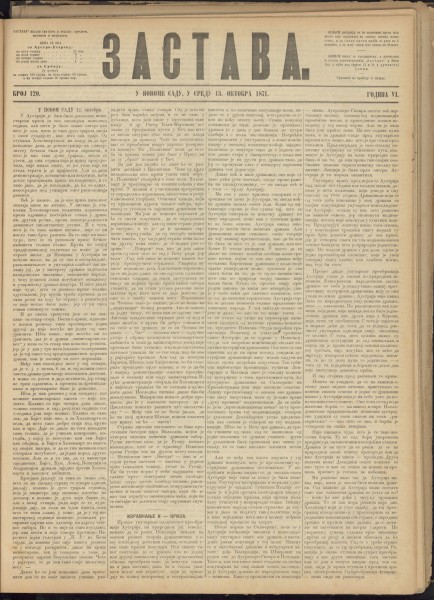 ЗАСТАВА / власник и уредник Светозар Милетић. - Год. 1, бр. 1 (9. фебруар