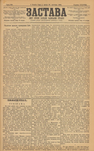 ЗАСТАВА / власник и уредник Светозар Милетић. - Год. 1, бр. 1 (9. фебруар