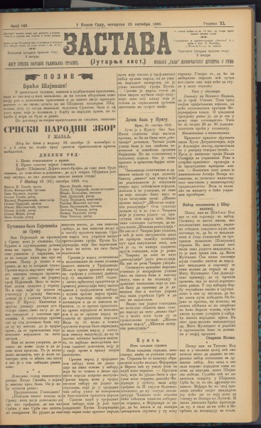 ЗАСТАВА / власник и уредник Светозар Милетић. - Год. 1, бр. 1 (9. фебруар