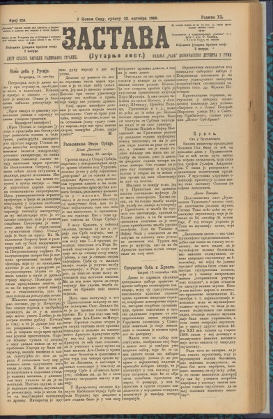 ЗАСТАВА / власник и уредник Светозар Милетић. - Год. 1, бр. 1 (9. фебруар