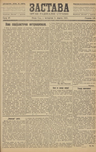 У периоду од септембра 1904. све до 1914. године публикација је имала два издања, Претраживање Заставе по тексту могуће је на сајту Претражива дигитална библиотека