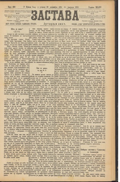 У периоду од септембра 1904. све до 1914. године публикација је имала два издања, Претраживање Заставе по тексту могуће је на сајту Претражива дигитална библиотека