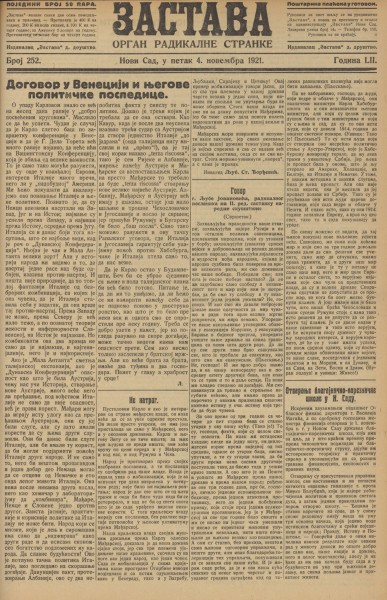 ЗАСТАВА / власник и уредник Светозар Милетић. - Год. 1, бр. 1 (9. фебруар