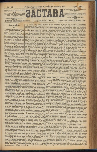 Год. 45, бр. 232 јут. (22. окт. = 4. нов. 1910)