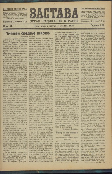 Год. 53, бр. 47 (3. март 1922)