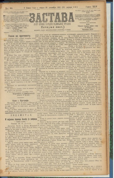 Год. 45, бр. 283 веч. (28. дец. 1910. = 10. јан. 1911)