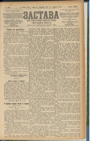 Год. 45, бр. 284 веч. (29. дец. 1910. = 11. јан. 1911)