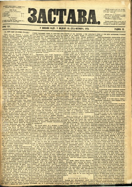 ЗАСТАВА / власник и уредник Светозар Милетић. - Год. 1, бр. 1 (9. фебруар