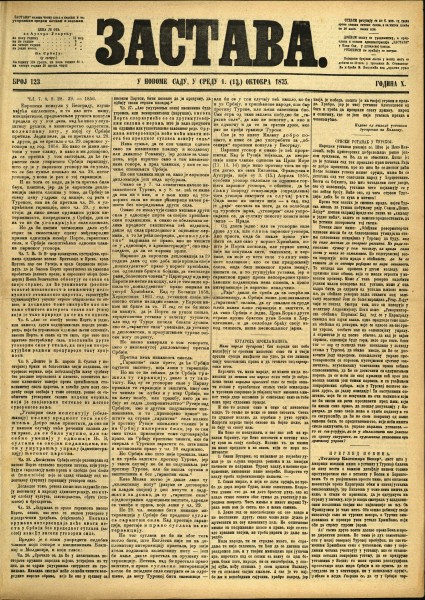 ЗАСТАВА / власник и уредник Светозар Милетић. - Год. 1, бр. 1 (9. фебруар