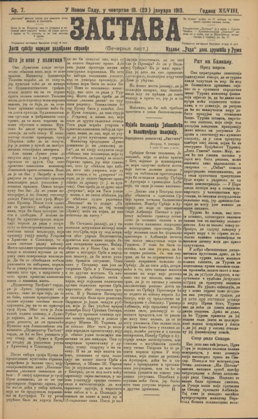 Год. 48, бр. 7 веч. (10. јан. = 23. јан. 1913)