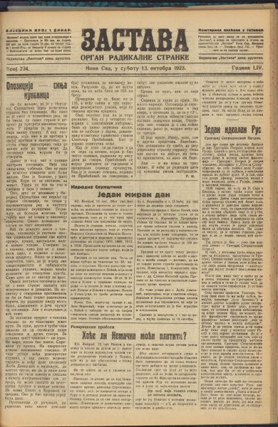 ЗАСТАВА / власник и уредник Светозар Милетић. - Год. 1, бр. 1 (9. фебруар