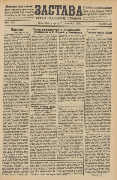 ЗАСТАВА / власник и уредник Светозар Милетић. - Год. 1, бр. 1 (9. фебруар