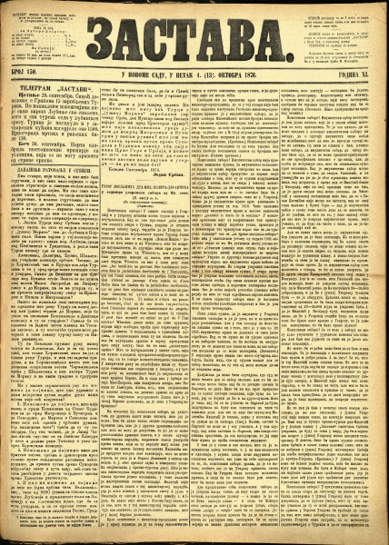 ЗАСТАВА / власник и уредник Светозар Милетић. - Год. 1, бр. 1 (9. фебруар