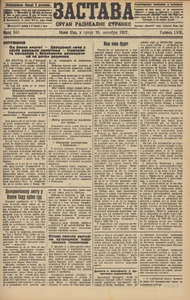 ЗАСТАВА / власник и уредник Светозар Милетић. - Год. 1, бр. 1 (9. фебруар