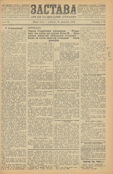 У периоду од септембра 1904. све до 1914. године публикација је имала два издања, Претраживање Заставе по тексту могуће је на сајту Претражива дигитална библиотека