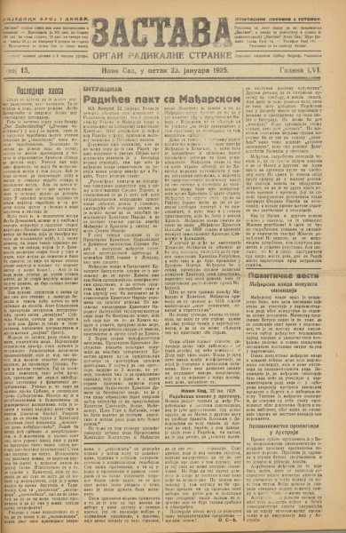 ЗАСТАВА / власник и уредник Светозар Милетић. - Год. 1, бр. 1 (9. фебруар