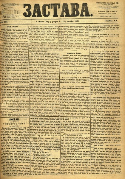 ЗАСТАВА / власник и уредник Светозар Милетић. - Год. 1, бр. 1 (9. фебруар