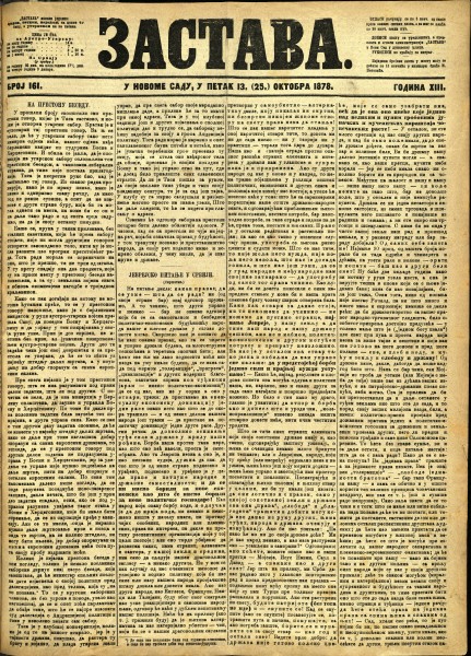 ЗАСТАВА / власник и уредник Светозар Милетић. - Год. 1, бр. 1 (9. фебруар