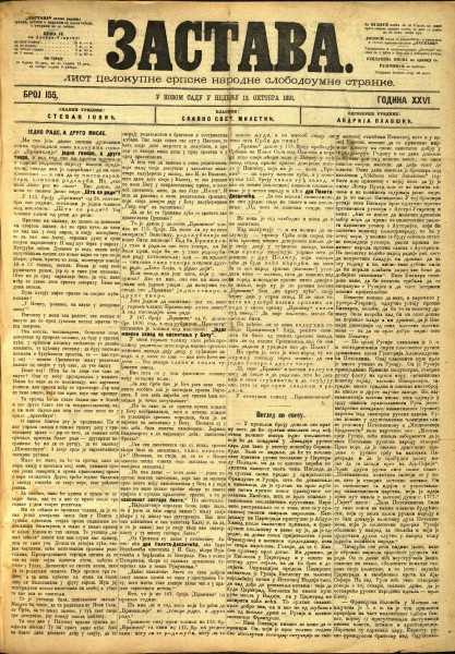 ЗАСТАВА / власник и уредник Светозар Милетић. - Год. 1, бр. 1 (9. фебруар