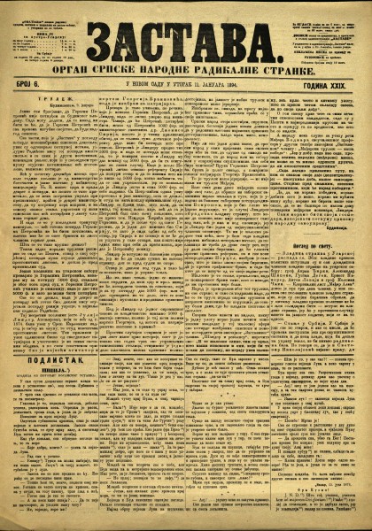 ЗАСТАВА / власник и уредник Светозар Милетић. - Год. 1, бр. 1 (9. фебруар