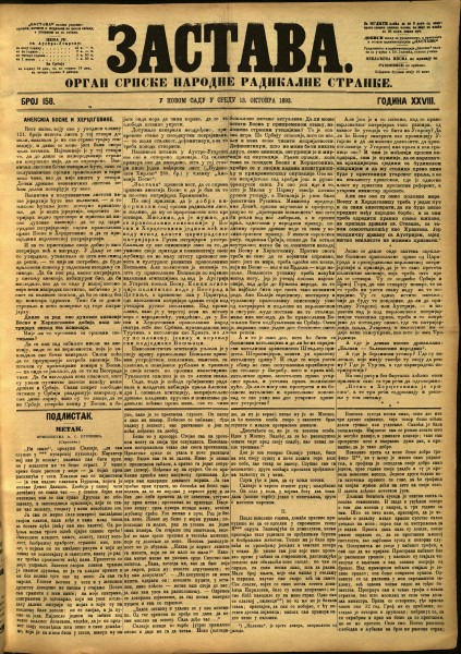 ЗАСТАВА / власник и уредник Светозар Милетић. - Год. 1, бр. 1 (9. фебруар