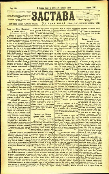 У периоду од септембра 1904. све до 1914. године публикација је имала два издања, Претраживање Заставе по тексту могуће је на сајту Претражива дигитална библиотека