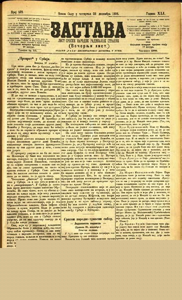 У периоду од септембра 1904. све до 1914. године публикација је имала два издања, Претраживање Заставе по тексту могуће је на сајту Претражива дигитална библиотека