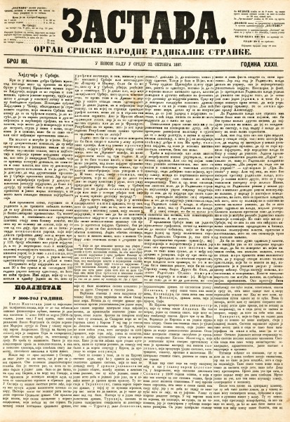 ЗАСТАВА / власник и уредник Светозар Милетић. - Год. 1, бр. 1 (9. фебруар