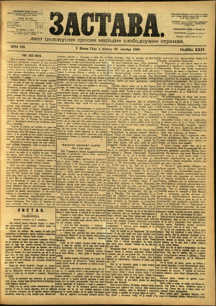 ЗАСТАВА / власник и уредник Светозар Милетић. - Год. 1, бр. 1 (9. фебруар