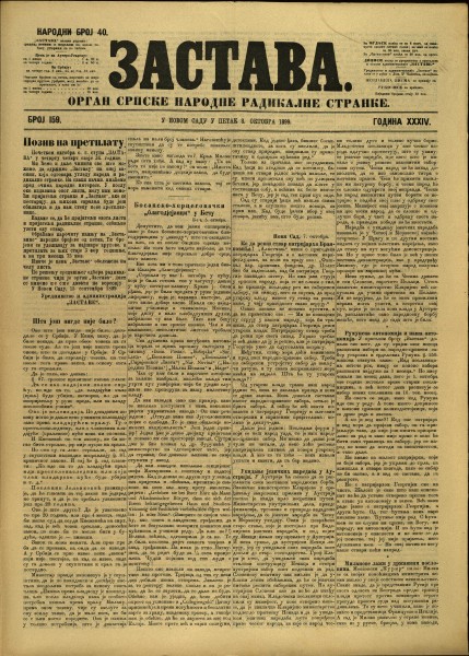 У периоду од септембра 1904. све до 1914. године публикација је имала два издања, Претраживање Заставе по тексту могуће је на сајту Претражива дигитална библиотека