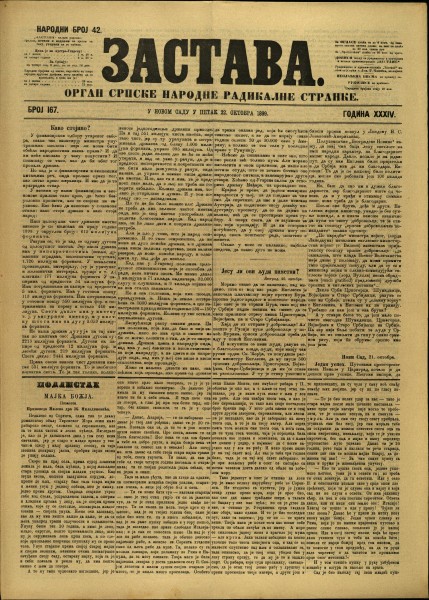 У периоду од септембра 1904. све до 1914. године публикација је имала два издања, Претраживање Заставе по тексту могуће је на сајту Претражива дигитална библиотека
