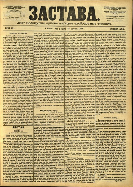 ЗАСТАВА / власник и уредник Светозар Милетић. - Год. 1, бр. 1 (9. фебруар