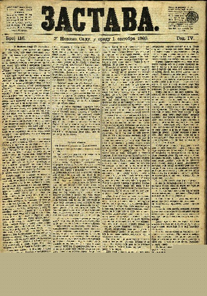 ЗАСТАВА / власник и уредник Светозар Милетић. - Год. 1, бр. 1 (9. фебруар