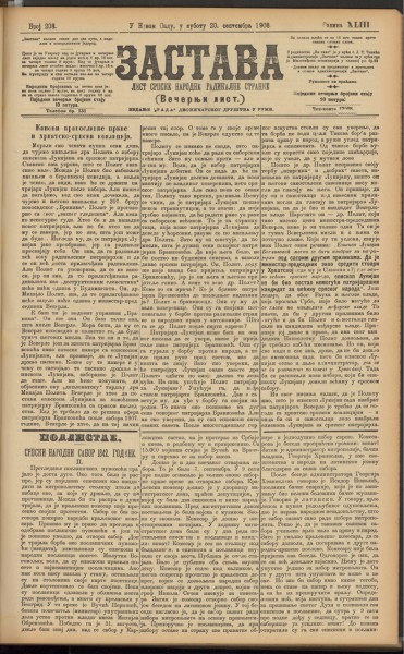 Год. 43, бр. 208 веч. (20. сеп. 1908)