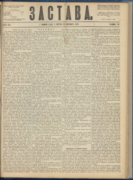 ЗАСТАВА / власник и уредник Светозар Милетић. - Год. 1, бр. 1 (9. фебруар