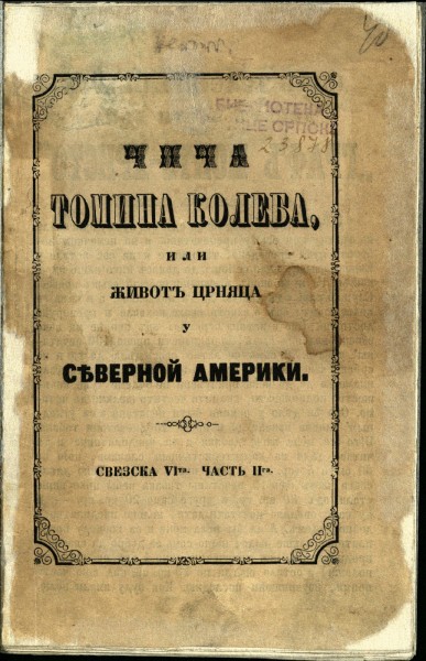 СТОУ, Харијет Бичер Новаковић 1921; Кириловић 1700; КНБС 179; Српске штампане књиге БМС 1801-1867, 4555. - Списак пренумераната. |