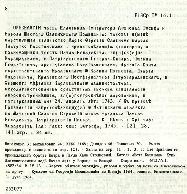 Колекције: Српске књиге 18. века