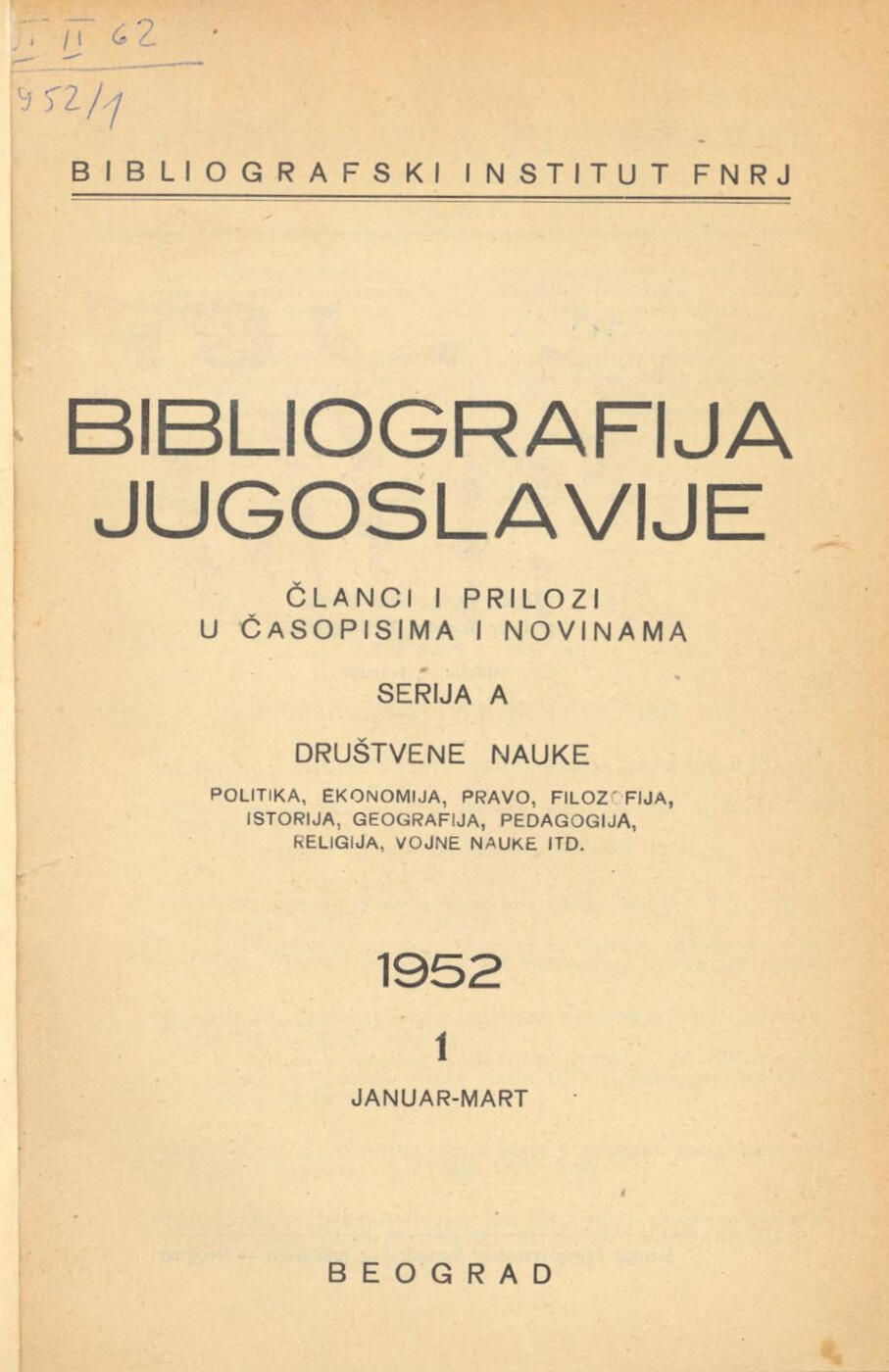 Издавач: Jugoslovenski bibliografski institut