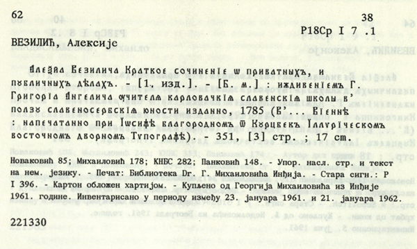 Колекције: Српске књиге 18. века
