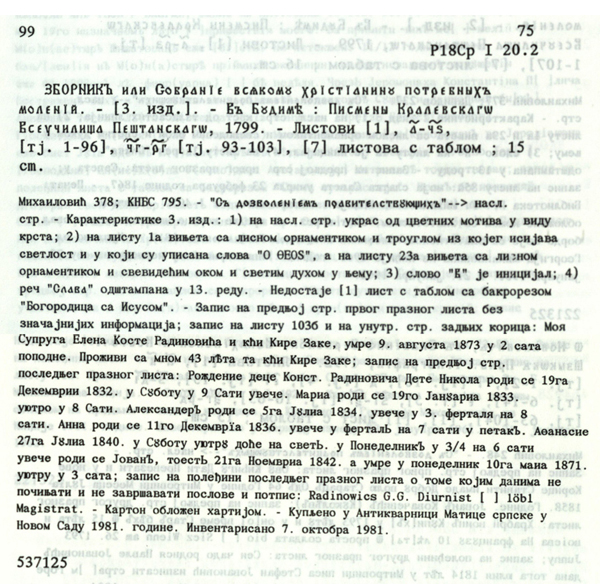 Колекције: Српске књиге 18. века