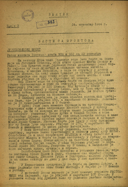 - Број: Год. [1], бр. 3 (24 нов. 1944)