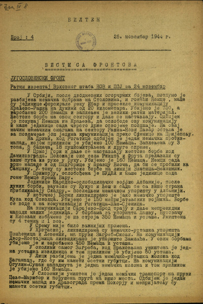 - Број: Год. [1], бр. 4 (25 нов. 1944)