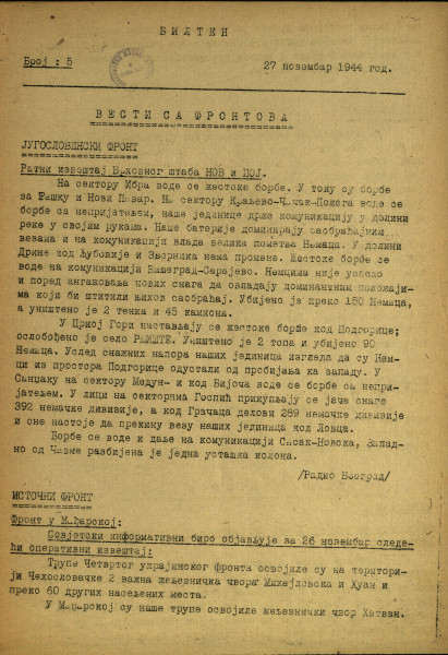 - Број: Год. [1], бр. 5 (27 нов. 1944)
