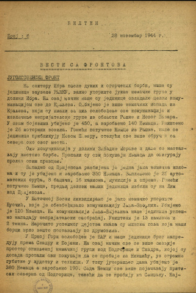 - Број: Год. [1], бр. 6 (28 нов. 1944)