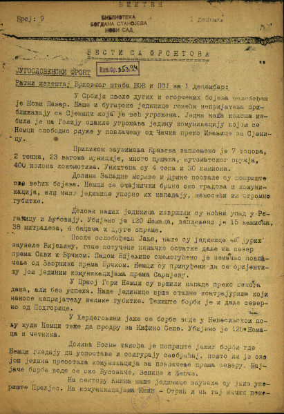 - Број: Год. [1], бр. 9 (1. дец. 1944)