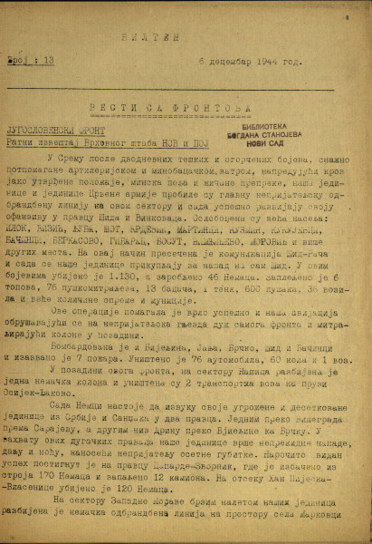 - Број: Год. [1], бр. 13 (6. дец. 1944)